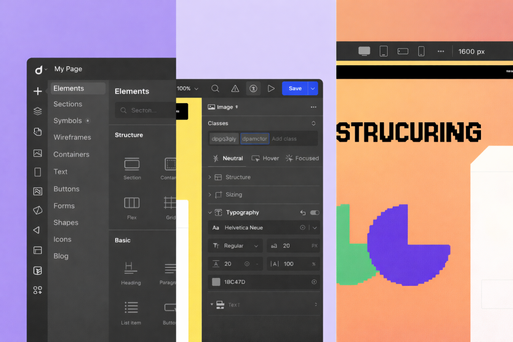 Elementor forces layouts into sections, columns, and inner sections. Droip removes that constraint entirely.